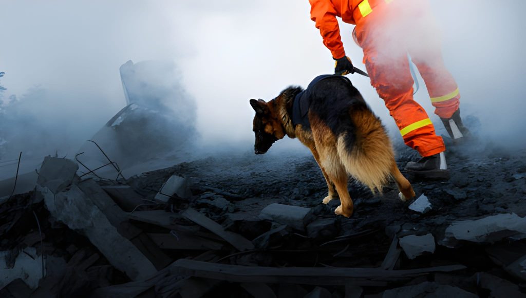 Setelah kebakaran besar, anjing ini bekerja berdampingan dengan tim SAR (Search and Rescue) untuk memastikan tidak ada korban yang tertinggal.