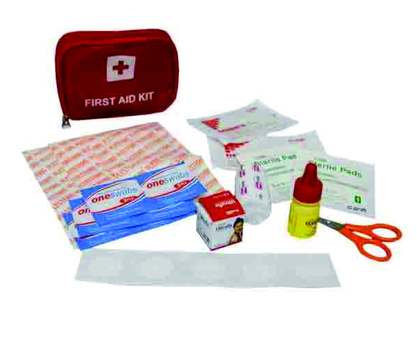 One swab, gunting, plester anti air, perband 5 cm,
