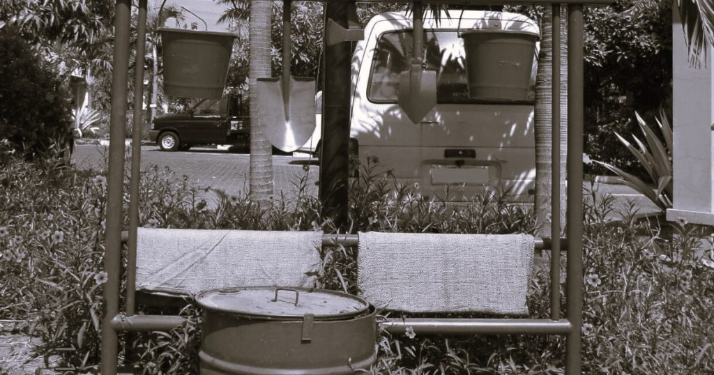 - Menggunakan air dari sumur, sungai, atau wadah penampungan air.